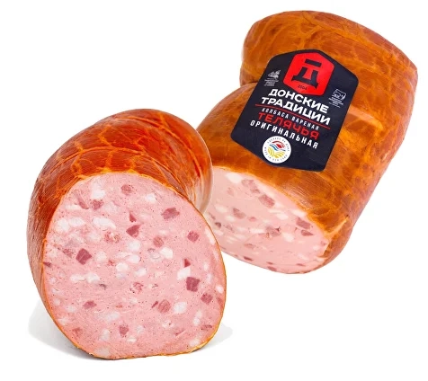 Вареная «Телячья» оригинальная входит в линейку позиций, вырабатываемых нашим предприятием. В рецептуре «Телячьей» на рисунок идет свиной язык с кубиками шпика, поэтому колбаса пользуется особым спросом у любителей структурных неординарных изделий.