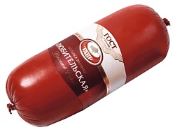свинина, говядина, шпик, вода, смесь посолочно-нитритная (соль, фиксатор окраски-нитрит натрия), соль поваренная пищевая, молочный белок, сахар, комплексная пищевая добавка (стабилизаторы (Е450(i), Е452(iii)), регуляторы кислотности (Е451(i), лимонная кислота, глюконо-дельта-лактон, Е262(i), Е331(iii)), антиокислители (аскорбат натрия, изоаскорбат натрия), ароматизатор («Аромат мяса»), специи (горчичное семя, паприка, тмин, перец черный, чеснок, мускатный орех, лук, кориандр, чили, имбирь), усил
