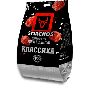 Сырокопченые мини-колбаски «Классика» приготовлены из куриной грудки, свинины и шпика с добавление соли и пряных специй. Продукт Smachos – это отличное дополнение к бокалу вина или полноценный перекус. Мини-формат мясных снеков удобен для употребления в любой ситуации.