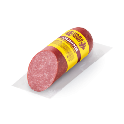 Свинина, шпик ,филе куриное, нитритно- посолочная смесь(соль поваренная пищевая, фиксатор окраски –нитрит натрия), гидролизат растительного белка, антиокислители: Е300, Е301, усилитель вкуса и аромата Е621 , ароматизатор (салями) , сахар, пряности (перец, душистый перец, кориандр, красный перец, мускатный орех), экстракты пряностей (перец),паприка красная молотая, краситель-экстракт паприки, подсолнечное масло, антиокислитель-экстракт розмарина.