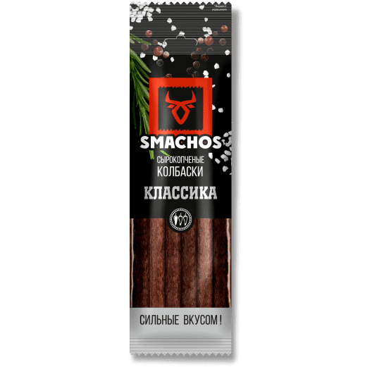 Сухие колбаски «Классика» Smachos (Смачос) – это прекрасная закуска к пиву и весьма сытный перекус для активных людей. Уникальная технология приготовления продукта позволяет сохранить полезные компоненты мясных снеков, а особенная рецептура наделяет их непревзойденно ярким вкусом.