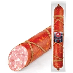 Свинина, шпик свиной,нитритно-посолочная смесь,фиксатор окраски,белки животные,глюкоза, усилитель вкуса и аромата, антиокисоитель,Натуральные пряности и их экстракты, лактоза, краситель, стартовая культура