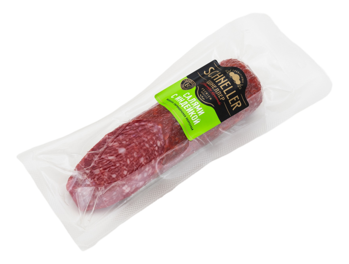 Колбаса сырокопченая SCHNELLER Салями с индейкой – это продукт по уникальной рецептуре сырокопченой колбасы на основе филе грудки индейки и филе куриной грудки, щедро приправленная натуральными специями – черным перцем, кардамоном, мускатным орехом, сельдереем. Продукт из натуральной индейки с высоким содержанием незаменимых аминокислот, белков и полиненасыщенных жиров. Не подвергается термической обработке, разрушающей полезные вещества и витамины.