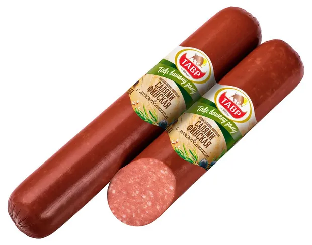 шпик, мясо цыпленка-бройлера, свинина, белковый стабилизатор (шкурка свиная, вода), филе цыпленка-бройлера, вода, крахмал картофельный, соевый белок, смесь посолочно-нитритная (соль, фиксатор окраски: нитрит натрия), комплексная пищевая добавка (стабилизатор-Е450iii; декстроза, соль, усилитель вкуса и аромата-Е621; антиокислитель-Е301, Е330; пшеничные волокна, пряности и их экстракты: перец черный, чили, чеснок, тмин, имбирь, перец душистый, можжевельник, перец красный, перец черный; кориандр; р