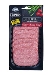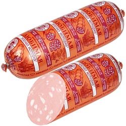 свинина, шпик хребтовый, нитритно-посолочная смесь (соль поваренная пищевая, фиксатор окраски нитрит натрия), чеснок свежий, перец черный молотый, сахар-песок, перец душистый молотый, орех мускатный молотый, пищевые волокна, красители (красный свекольный, кармины), усилитель вкуса и аромата Е621, антиокислитель изоаскорбат натрия, бактериальный препарат.