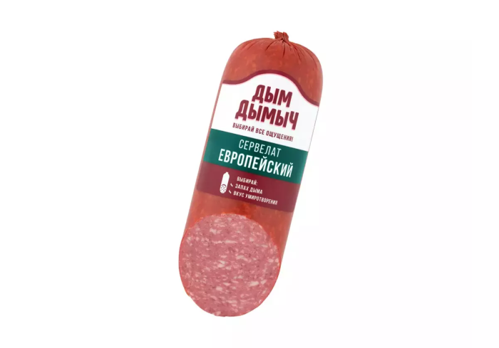 Изготовлен из трех видов отборного мяса, нежного шпика и сочетания ярких пряностей. Сервелат “Европейский” создан специально для нарезки на праздничный стол.
