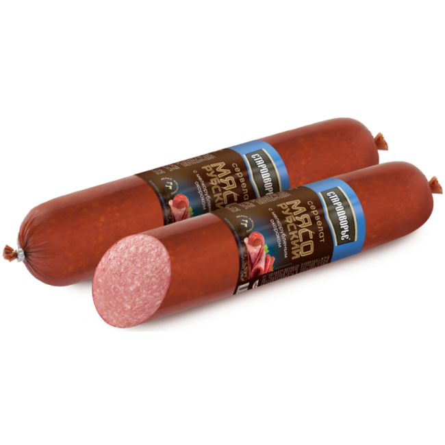 Для сервелата Мясорубский на современном оборудовании воссоздали деревенский способ приготовления фарша - с мелкорубленной структурой. Благодаря такому измельчению мяса продукт становится сочным, а сочетание благородных специй делает его ароматным и по-деревенски вкусным.