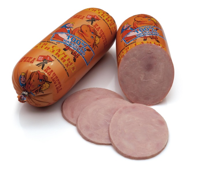 свинина, вода, посолочно-нитритная смесь (соль, фиксатор окраски - нитрит натрия), крахмал картофельный, молочный белок, декстроза, регуляторы кислотности: трифосфат натрия, ацетаты натрия, лактат кальция; уплотнитель-сульфат магния, желирующие агенты Е 407а, Е 508; усилитель вкуса и аромата-глутамат натрия, ароматизаторы, молоко, антиокислитель-изоаскорбат натрия, загустители: тары камедь, ксантановая камедь
