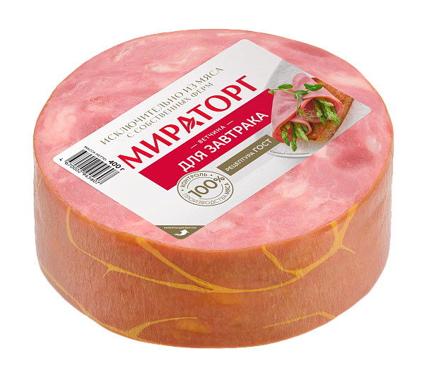 Ветчина "Для завтрака" изготовлена строго по ГОСТу из свинины собственного производства. Срез розового цвета, рисунок с кусочками свинины , вкус мясной с тонким ароматом черного перца. Идеальное решение не только для завтрака, но и перекуса, праздничного стола, салатов.