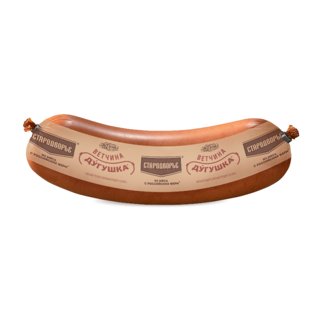 Ветчина Дугушка отличается уникальной изогнутой формой, более насыщенным мясным вкусом и мясистой консистенцией.