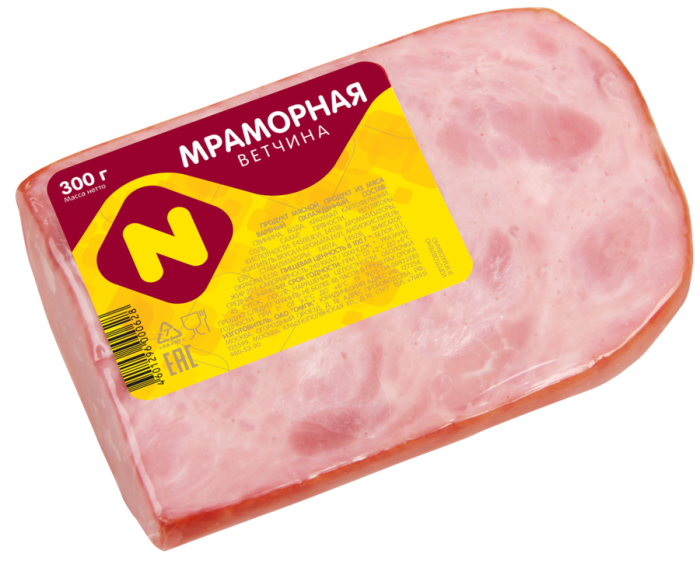 Ветчина ОСТАНКИНО Мраморная отличается натуральным мясным вкусом и ароматом. Она производится из отборных ингредиентов по современным технологиям. Понравится всей семье!