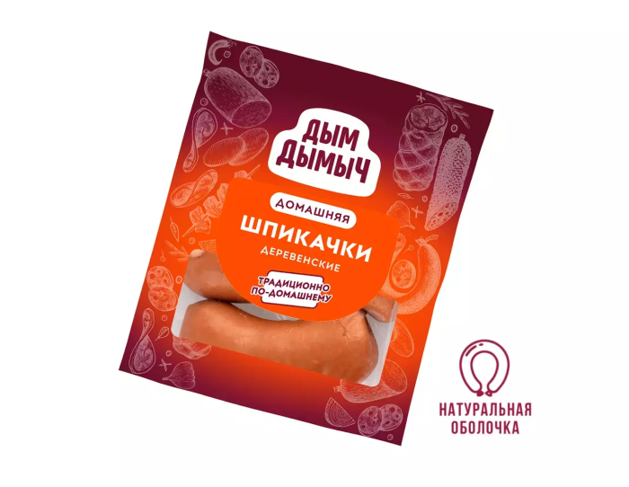 Сочные шпикачки “Деревенские” в натуральной оболочке. В составе три вида натурального мяса и нежный рубленый шпик. Благодаря наличию шпика продукт обладает сочной мясной консистенцией. Отлично подойдут для сытного ужина и пикника.