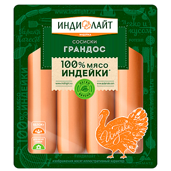Сосиски Грандос из индейки охл 0,44кг/Новые Фермы /3125