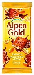 Шоколад Alpen Gold молочный арахис/кукур.хлопья 80г