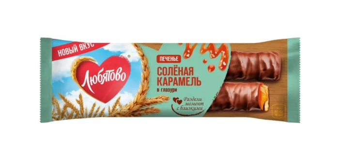Батончик с печеньем печенье с карамелью ЛЮБЯТОВО С соленой карамелью, глазированное 50 г флоупак, шоубокс