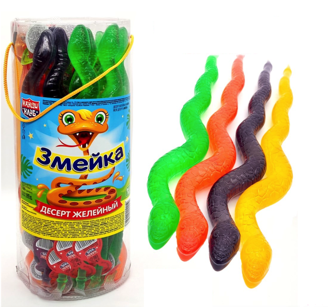 очищенная вода, загустители (конжаковая камедь, каррагинан), регуляторы кислотности (лимонная кислота, цитрат натрия, яблочная кислота), подсластители (цикламат натрия, аспартам, ацесульфам калия), консервант (сорбат калия), ароматизаторы (яблоко, апельсин, клубника, виноград), красители Е102, E110, E129, E133.