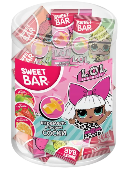 КАРАМЕЛЬ НА ПАЛОЧКЕ СО ВКУСОМ КЛУБНИКИ, СО ВКУСОМ ЯБЛОКА,СО ВКУСОМ АПЕЛЬСИНА "SWEET BAR".