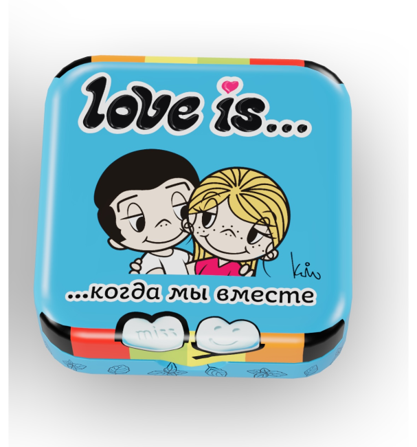 Освежающие мятные конфеты ОРИГИНАЛЬНЫЙ ТОВАР ТМ Love is... (пресованное драже). Привлекательная яркая упаковка. В каждом вкусе представлены три дизайна . Металлическая коробочка дополнена пластиковым дозатором, что пластиковым дозатором, что создает дополниительное удобство и гигиеничность при употреблении продукта. Уникальная форма конфеты- в виде сердца. На обеих сторонах выдавлены надпись или смайлик kiss, miss, hug или love. Целевая аудитория от 12 до 45 лет