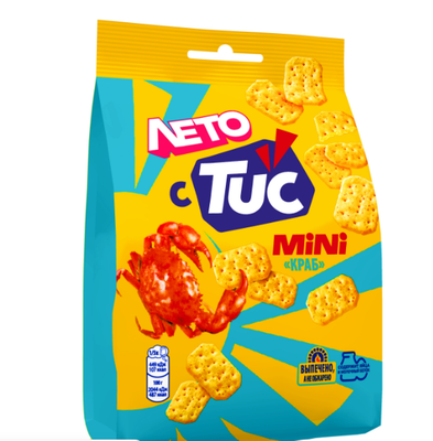 Хрустящие мини-крекеры с крабом. Приготовлен по традиционной рецептуре из натуральных ингредиентов. Яркий вкусный соленый перекус, который удобно взять с собой в школу или университет, на работу или на прогулку, в поездку или на пикник.