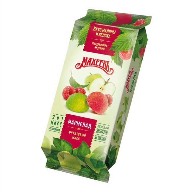 сахар, патока, вода питьевая, агент желирующий пектины, регулятор кислотности, лимонная кислота, красители (медные комплексы хлорофиллинов, куркумин), концентрированный сок черной моркови, ароматизаторы, экстракт малины, экстракт яблока