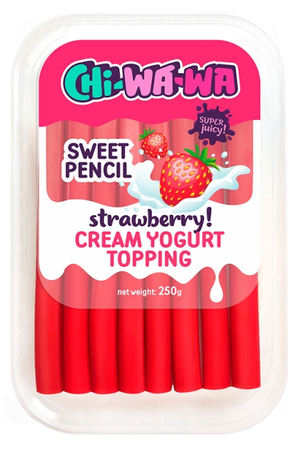 МАРМЕЛАД ЭКСТРУДИРОВАННЫЙ КАРАНДАШ СЛАДКИЙ СО ВКУСОМ И АРОМАТОМ КЛУБНИКИ.