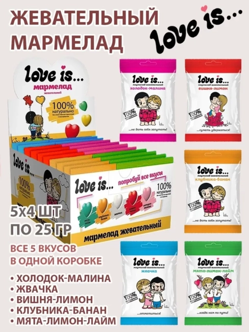 Набор вкуснейшего мармелада состоит из 4 вкусов:вишня-лимон,клубника-банан,холодок -малина и клубника -банан.Это 100 натуральное лакомство порадует как детей ,так и взрослых .