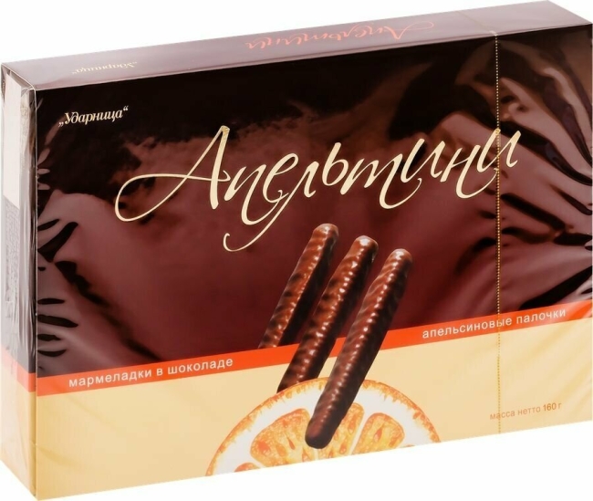 Какао-продуктов в шоколаде не менее 56%. Состав: cахар; тёмный шоколад (сахар, какао тёртое, масло какао, какао-порошок, молочный жир, эмульгатор — лецитин подсолнечника, ароматизатор натуральный); сироп глюкозно-фруктозный; желирующий агент — агар; регуляторы кислотности — кислота лимонная, цитрат натрия 3-замещённый; экстракт апельсина; ароматизатор натуральный «Апельсин».