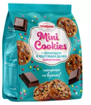 Сдобное печенье небольшого размера, приготовленное из ванильного теста, украшенное цветным драже. В яркой, красочной упаковке!