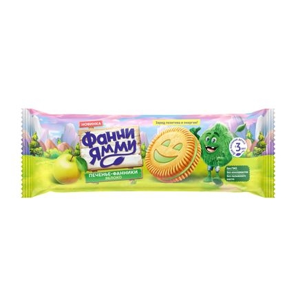 Мука пшеничная, масло кокосовое, сахар, сыворотка молочная сухая, крахмал кукурузный, сироп инвертный (сахар, регулятор кислотности-лимонная кислота), эмульгатор-лецитин соевый, сок яблочный концентрированный, разрыхлители: гидрокарбонат натрия, гидрокарбонат аммония, соль, экстракт ванили, красители: медные комплексы хлорофилинов, каротины, ароматизатор натуральный
