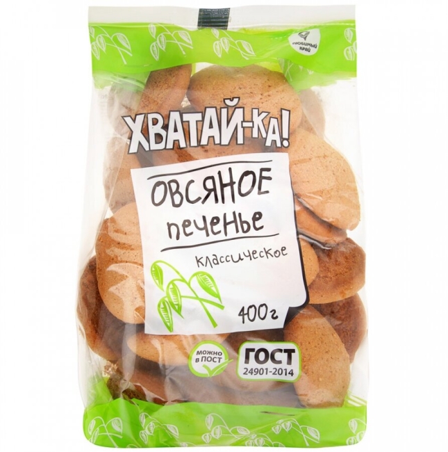 Мука пшеничная, сахар, мука овсяная, маргарин (растительные рафинированные дезодорированные масла и модифицированные масла; вода, эмульгаторы: моно- и диглицериды жирных кислот, соевый лецитин; соль поваренная, консервант: сорбат калия; регулятор кислотности: лимонная кислота; краситель: бета-каротин, ароматизатор), патока, полуфабрикат яблочный (пюре яблочное, сахар, загуститель: пектин, регулятор кислотности - лимонная кислота), темный ячменный солодовый экстракт, соль поваренная, разрыхлитель