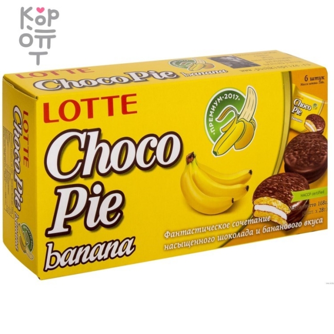 Печенье прослоенное глазированное "ЛОТТЕ ЧОКОПАЙ" (LOTTE CHOCOPIE) С АРОМАТОМ БАНАНА 6 шт, 168г
