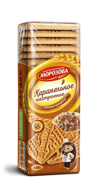 мука пшеничная хлебопекарная высший сорт, жиры растительные (растительные масла, антиокислитель концентрат смеси токоферолов), сахар, крупа манная, вода питьевая, карамельная масса (сахар, патока, краситель натуральный - сахарный колер), меланж яичный (яйца куриные пищевые), сыворотка молочная сухая, соль, разрыхлители - гидрокарбонат натрия (сода пищевая), карбонаты аммония, регулятор кислотности - лимонная кислота, ароматизатор.