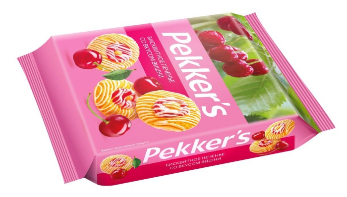 Нежное бисквитное печенье со вкусом вишни покрытое белой глазурью.