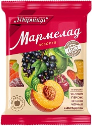 Мармелад Ударница Ассорти со вкусом Яблока/Персика/Вишни/Ч.смородины 275гр