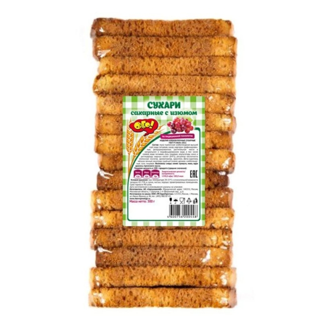 Мука пшеничная общего назначения М 55-23, вода питьевая, сахар белый кристаллический свекловичный, виноград сушеный, маргарин (рафинированные дезодорированные растительные масла в натуральном и модифицированном виде, в том числе соевое вода питьевая, эмульгатор моно- и диглицериды жирных кислот, соль поваренная пищевая, регулятор кислотности лимонная кислота, ароматизатор, краситель бета - каротин), дрожжи хлебопекарные прессованные, соль поваренная пищевая, яичный порошок.