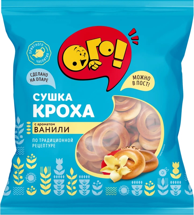 ушки Ого Кроха с ароматом ванили 200г обладает приятным вкусом и нежным ароматом. Она характеризуется небольшими размерами и аккуратной округлой формой. Хлебобулочные изделия аппетитно выглядят и хорошо насыщают, быстро устраняя неприятное чувство голода. Они питательные, за счет чего выступают в качестве сытного перекуса между основными приемами пищи.Традиционно сушку подают к горячему чаю, а также можно предложить к кофе, какао и молоку.