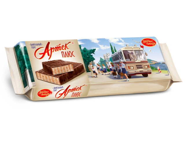 Классические вафли в виде глазированного торта Артек Плюс от Тамбовской кондитерской фабрики ТАКФ – лучшее дополнение к чаю и кофе. В составе вафельного тортика с жировой начинкой отсутствуют искусственные красители и консерванты. Торт Артек Плюс отлично подойдет в качестве десерта на завтрак, обед или ужин – его хватит на всю семью.