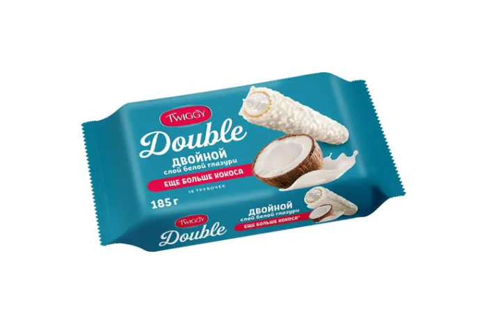 Хрустящие трубочки с кокосовым кремом, в стружке спелой мякоти отборного кокоса.
