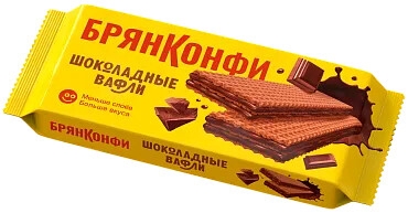 Вафли с жировой начинкой «Шоколадные». Состав: вода питьевая; мука пшеничная; жир кондитерский (рафинированные дезодорированные растительные масла, в том числе соевое, эмульгатор лецитин соевый, антиокислитель Е306); сахар; какао-порошок; меланж яичный жидкий; шоколадная масса (сахар, тертое какао, масло какао, эмульгаторы: лецитин соевый, Е476, ароматизатор «Ванилин»); эмульгатор лецитин соевый; соль; разрыхлитель гидрокарбонат натрия (сода пищевая); ароматизаторы «Шоколад», «Ваниль». Энергети