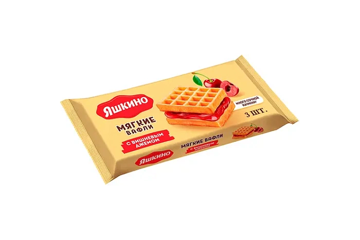 начинка вишневая (патока, сахар, вишневое пюре, вода питьевая, агент влагоудерживающий: сорбитовый сироп; фруктоза кристаллическая, агент желирующий: пектины; регуляторы кислотности: лимонная кислота, цитрат натрия 3-замещенный; соль, консервант: сорбат калия; ароматизаторы, краситель: кармины); продукты яичные, мука пшеничная, сахар, масла растительные (пальмовое, подсолнечное); вода питьевая, крахмал кукурузный, агенты влагоудерживающие: глицерин, сорбитовый сироп; сыворотка сухая молочная