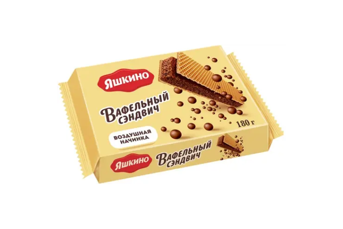Вафли Яшкино тонкие с кремом с клубнич вкусом 144гр /РВТ101