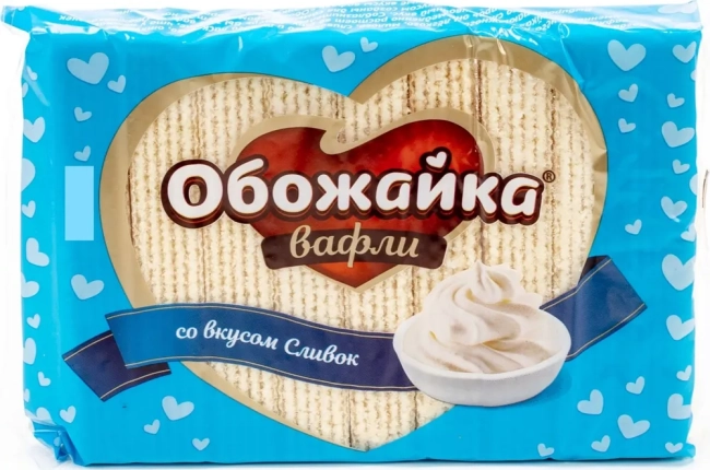 Тонкие хрустящие вафли, прослоенные нежной начинкой с восхитительным сливочным вкусом. Наслаждайтесь и угощайте хрустящими вафлями «Обожайка» своих любимых.