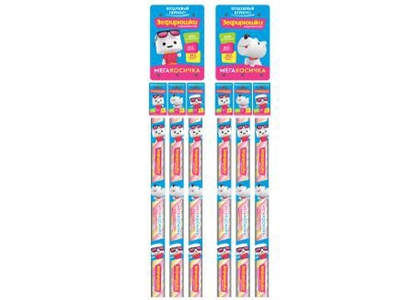 Состав: сахар, патока, вода питьевая, желатин пищевой, глюкоза кристаллическая; экстракт чёрной моркови; кукурузный крахмал, красители: куркумин, каротины; ароматизатор натуральный: ваниль.