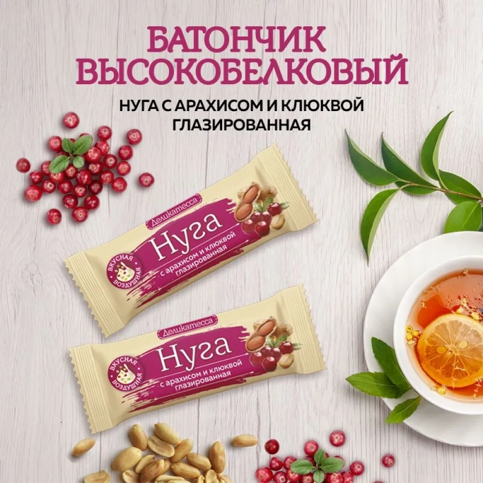 Нуга с арахисом и клюквой, покрытых роскошной глазурью,объединяет в себе нежное сочетание мягкой нуги, хрустящего арахиса и сочной клюквы, что придает этому десерту неповторимый вкус. Глазированный слой придает дополнительно сладость и оставляет приятное послевкусие.
