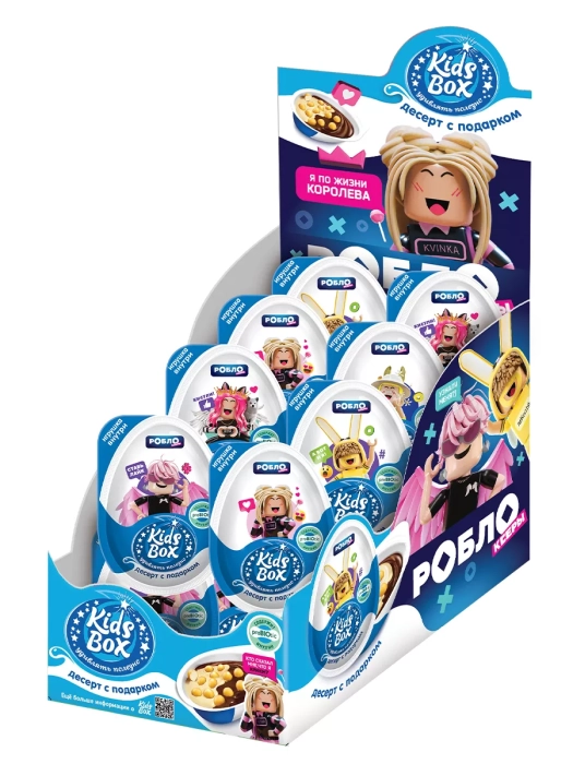 Kids Box - это не просто игрушка, это целый мир внутри! Каждое яйцо содержит удивительную игрушку, которая порадует вашего ребенка, а также вкусный шоколадный десерт для сладкого удовольствия. Развлекательная игрушка и вкусный десерт - все это в одном яйце!