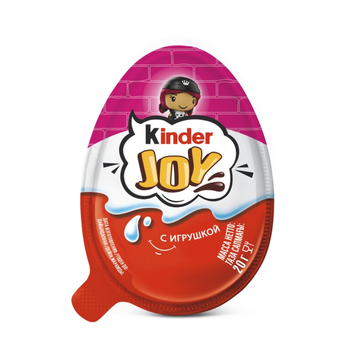В одной половине Kinder Joy — нежная двухслойная паста на основе молока и какао с хрустящими вафельными шариками с молочным кремом внутри, а в другой — игрушка-сюрприз, которая открывает двери в мир увлекательных игр.