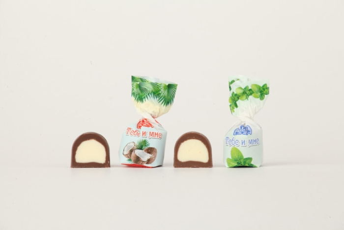 Конфеты в мини купольной форме в молочной глазури со светлой сливочной начинкой и со вкусом кокосовых сливок, мяты
