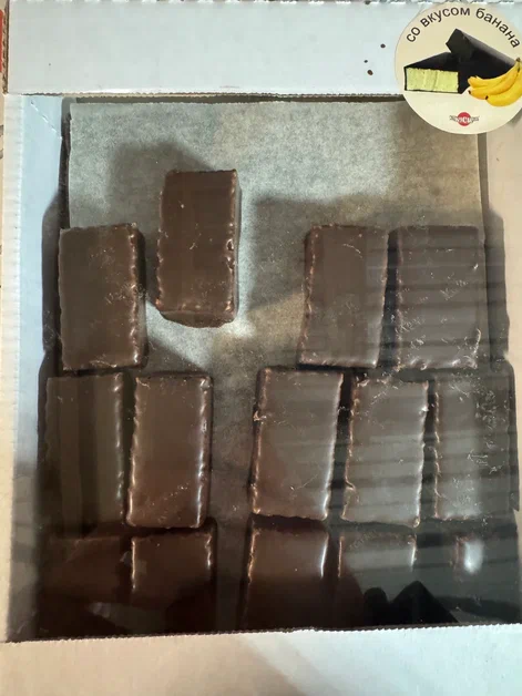 сахар, патока крахмальная , заменитель молочного жира (рафинированные дезодорированные модифицированные растительные масла:пальмовое, рапсовое,соевое, эмульгаторы (глицериды жирных кислот, соевый лецитин), глазурь кондитерская (сахар, заменитель какао-масла лауринового типа (гидрогенизированное пальмоядровое масло , какао-порошок, эмульгатор –лецитин соевый, соль, ароматизатор «ванилин»), молоко цельное сгущенное с сахаром (молоко нормализованное, сахар,лактоза), белок яичный сухой, желирующий