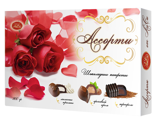 Набор шоколадных конфет с тремя начинками: «молочное пралине», «ореховый крем», «трюфель».
