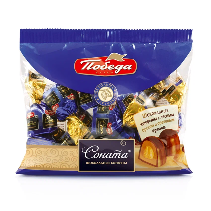 молочный шоколад (сахар, масло какао, сыворотка молочная сухая, тертое какао, сухое цельное молоко, пахта сухая, эмульгатор (лецитин соевый), ароматизатор (ванилин)), сахар, арахис, жир растительный, лесной орех (фундук) цельный и тертый, сыворотка молочная сухая, эмульгатор (лецитин соевый), ароматизатор (ванилин).